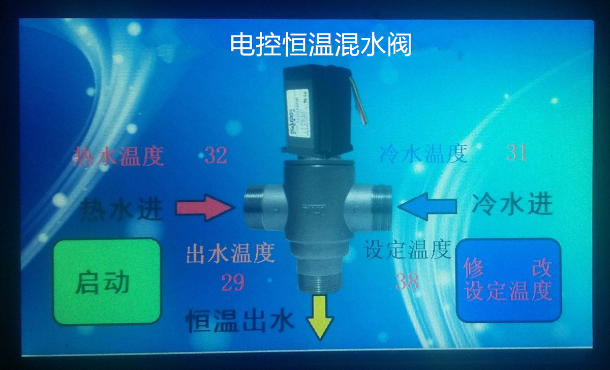 在阀体内混水处安装高灵敏记忆合金温度传感器感应出水温度,温度传感器发送温度信号给电脑控制单元,控制单元发送指令到电机,电机旋转控制冷热水的进水量,从而使流出的水达到所设定温度的水。让单管提供恒温水变成现实。